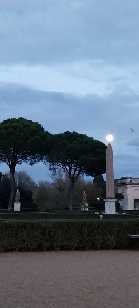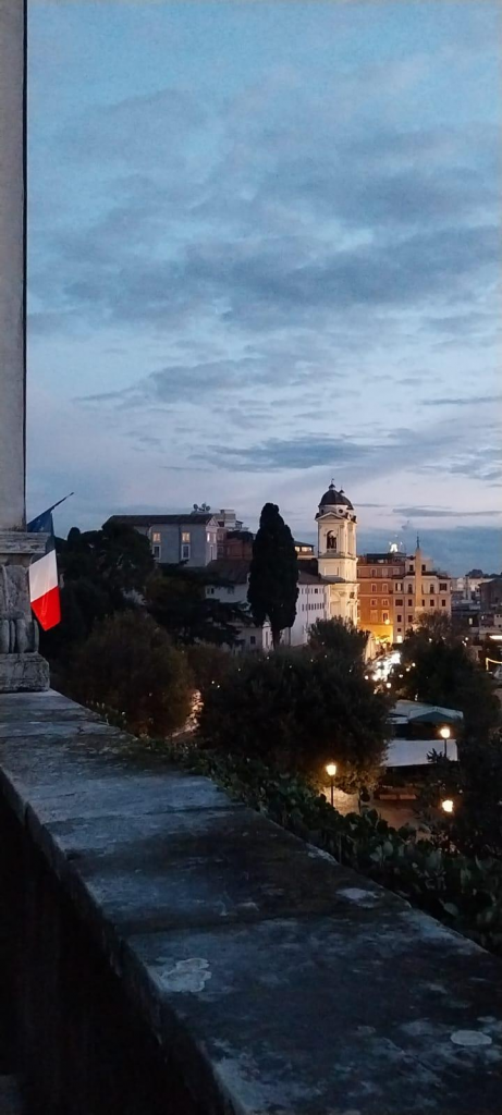 Foto Malte Godglück: Rom, Blick von der Mauer auf Villa Medici, auf deren Festung, auf der Gallieo Gallilei interniert wurde. Im Gegensatz zu den Medicis in Florenz, die Wissenschaftler wie ihn förderten, geriet er 1633 in die Fänge der Akquisition, päpstlichen Bann und stand unter Hausarrest. Neun Jahre später erblindete er. https://www.youtube.com/watch?v=z274ffoICII&t=164s