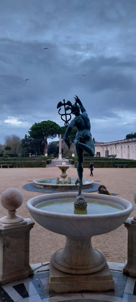 Foto Malte Godglück: Villa Medici, Innenhof. Für die Gartenanlage zeichnete hauptsächlich Ferdinando I de Midci (1549-1609) verantwortlich. Über Virginia Woolfs Reisen ans Mittelmeer und Italien, vorwiegend vor dem Ersten Weltkrieg, informiert der Rundfunkbeitrag https://www1.wdr.de/radio/wdr3/programm/sendungen/wdr3-lesung/virginia-woolf-mittelmeer-100.html