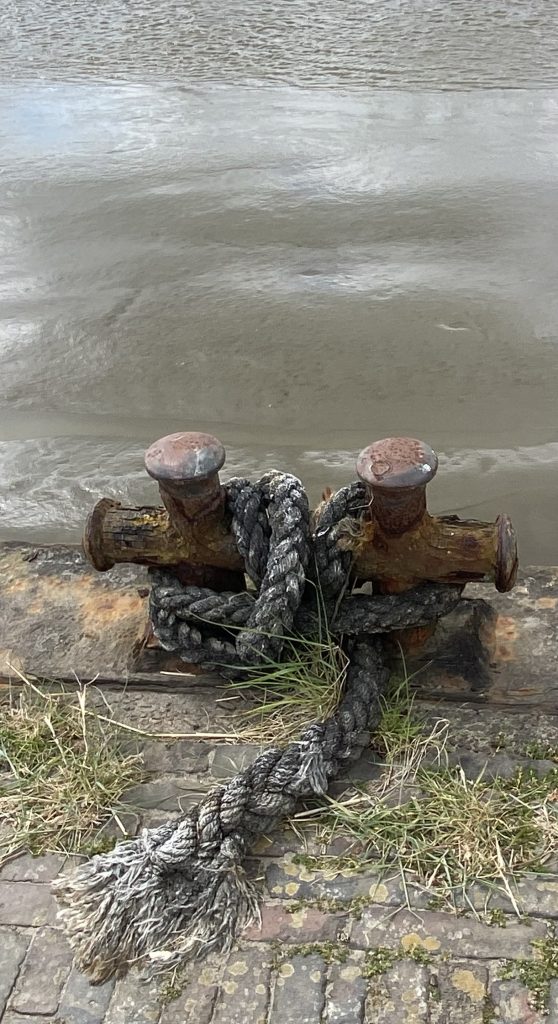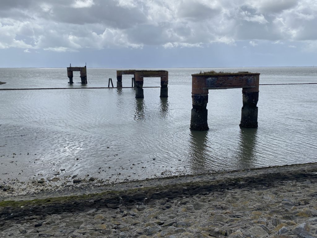 Foto Belinda Helmert: Dangaster Hafen, Mole in der Nähe des Siels. Dieses wurde1956 gebaut für die Entwässerung des Binnenlandes bis nach Ostfriesland. Bei hohem Wasserstand durch starke Regenfälle werden die Sieltore geöffnet, um das Wasser in den Jadebusen zu leiten und damit die Überschwemmung des Binnenlandes zu vermeiden.