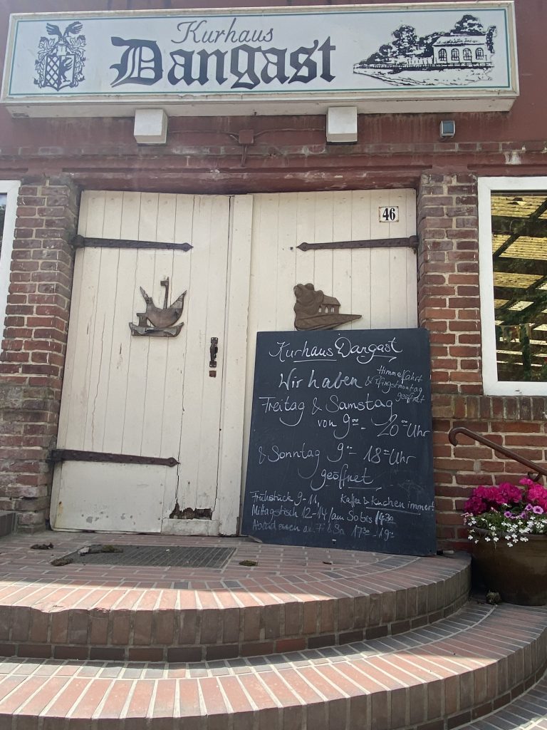 Foto Belinda Helmert: Dangast, Kurhaus, Eingang. Das Nordseebad Dangast ist ein Kurort und Stadtteil von Varel im Landkreis Friesland am südwestlichen Jadebusen und hat 533 Einwohner. Das Kurhaus wurde 1820 als Nachfolger des abgebrannten ersten „Conversationshauses“ von 1804 erbaut.