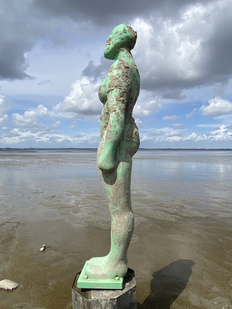 Foto Belinda Helmert, Dangast, Skulptur im Wattmeer.Bei Hochwasser kann man baden, bei Ebbe im Schlick waten.