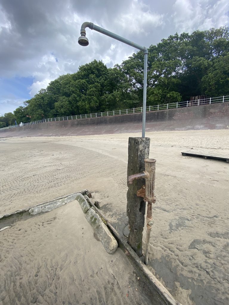 Foto Belinda Helmert: Dangast, Skulpturenpfad am Strand und im Sand. Dusche, kein Kunstobjekt ….