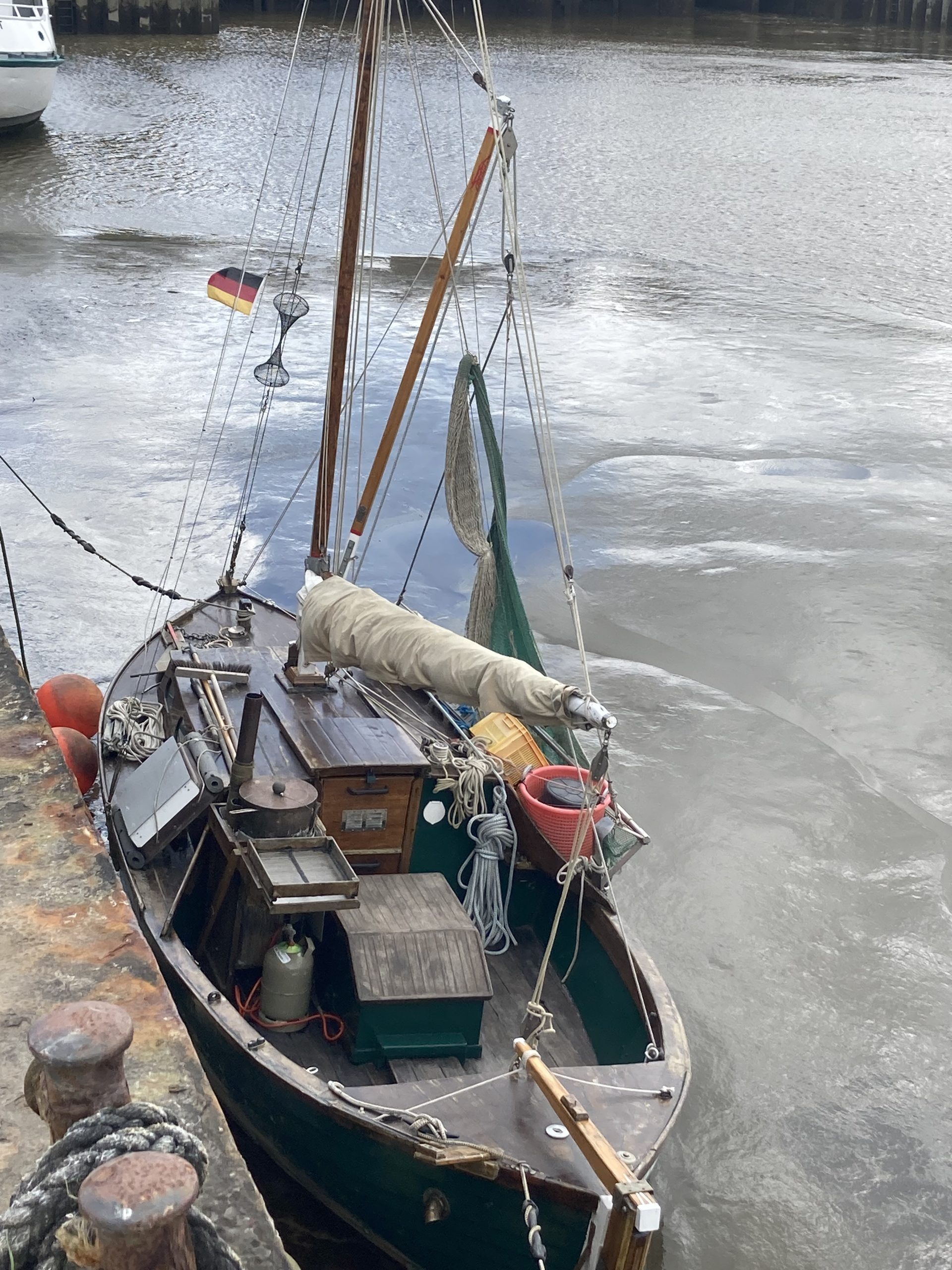 Foto Bernd Oei: Einziger Fischkutter im Dangaster Hafen. Der Ort und die Fischerei an der Nordseeküste haben ihre besten Zeiten hinter sich.