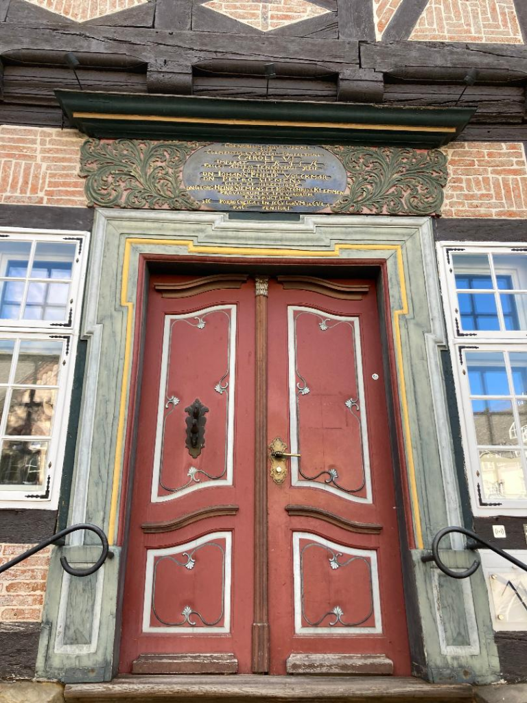 Foto Bernd Oei: Goslar, Tür und Fachwerkaus aus dem 17, Jahrhundert in der Rosentorstraße 27 A, heute Sitz von Gebäudemanagement und Denkmalpflege