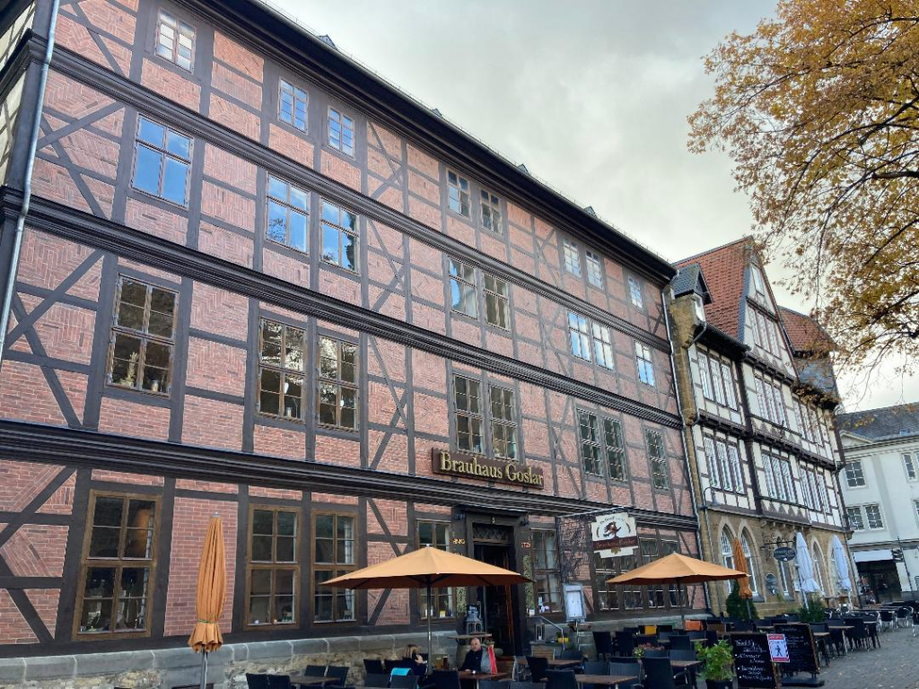Foto Bernd Oei: Goslar, Brauhaus, Marktkonform 2 gegenüber der Marktkirche und in unmittelbarer Nachbarschaft zur ehemaligen Ratsapotheke, heute Wohn- und Geschäftshaus. Spezialität des Hauses ist das Gosebier, benannt nach dem Stadtfluss, ein obergäriges Weizen. Es ist heute die einzige selbstproduzierende Gasthausbrauerei der Stadt mit ihren 47 500 Einwohnern.