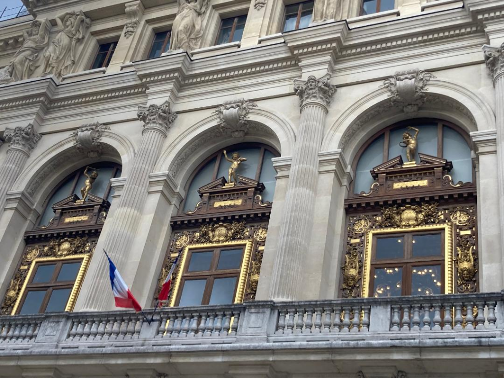 Foto Belinda Helmert: Alte Französische Nationalbibliothek, Haupteingang, rue Richelieu 58. Die drei Figuren symbolisieren Geschichte, Philosophie und Theologie stellvertretend für das Streben nach Wissen, Wissenschaft und Gelehrsamkeit.