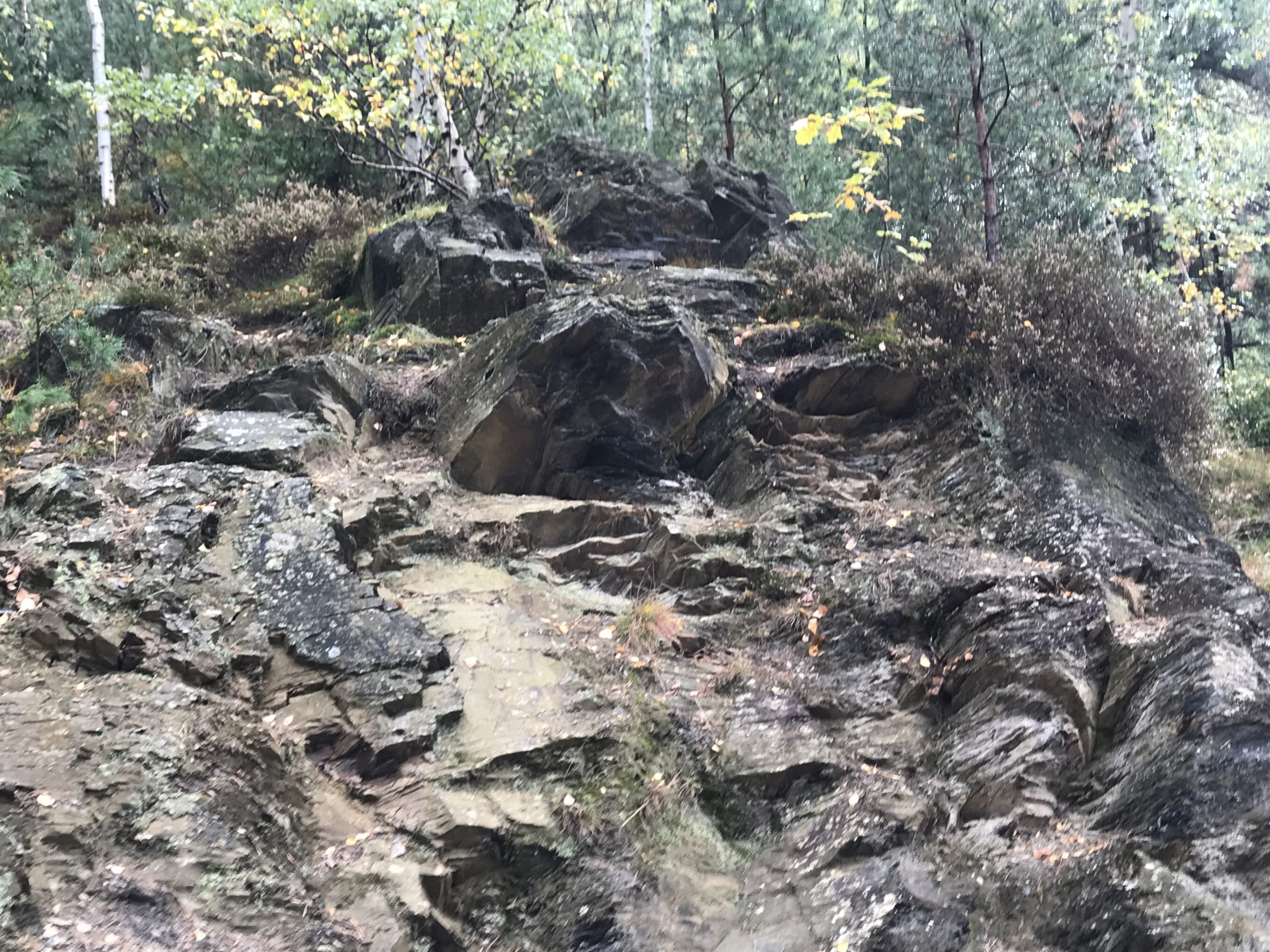 Foto Bernd Oei: Aufstieg zum Rammelsberg. Über tausend Jahre diente er zur Gewinnung von Buntmetallen, v.a. Erz. Dauerhaft entwurzeln Bäume.