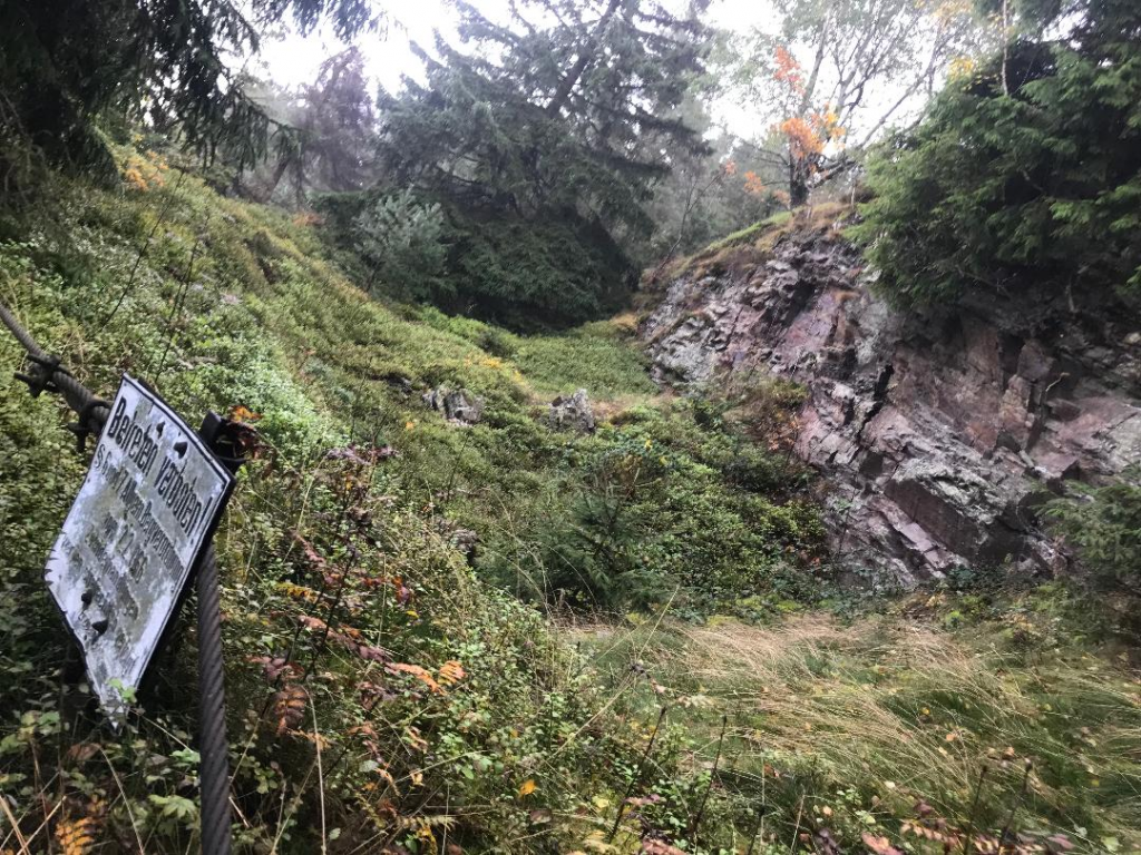Foto Bernd Oei: Verbotener Sturm zum Gipfel, Aufstieg am Rammelsberg wegen abstürzenden Geländes unzugänglich. https://regionalheute.de/goslar/wanderwege-gesperrt-am-rammelsberg-werden-baeume-gefaellt-goslar-harz-1647951460/