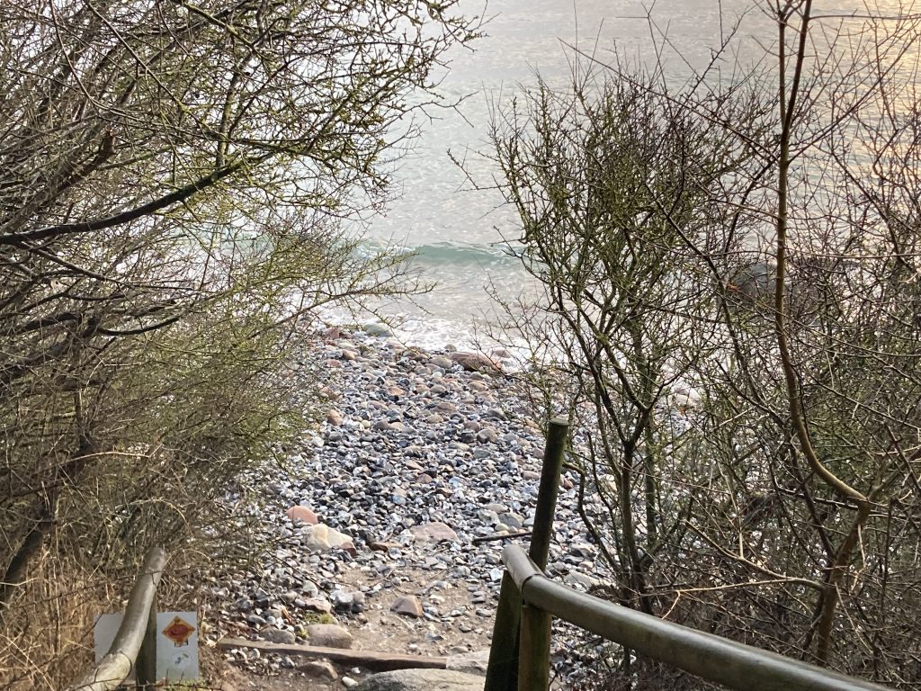 Foto Bernd Oei: Rügens Nordküste, Kap Arkona, Veilchentreppe, Abgang zum steinigen Ufer und Aufgang zum Kreidefelsen Swantevit, einst Tempel der slawischen Inselbewohner. Im Frühling sprießen hier Veilchen. https://www.ostsee.de/insel-ruegen/kap-arkona-veilchentreppe.php