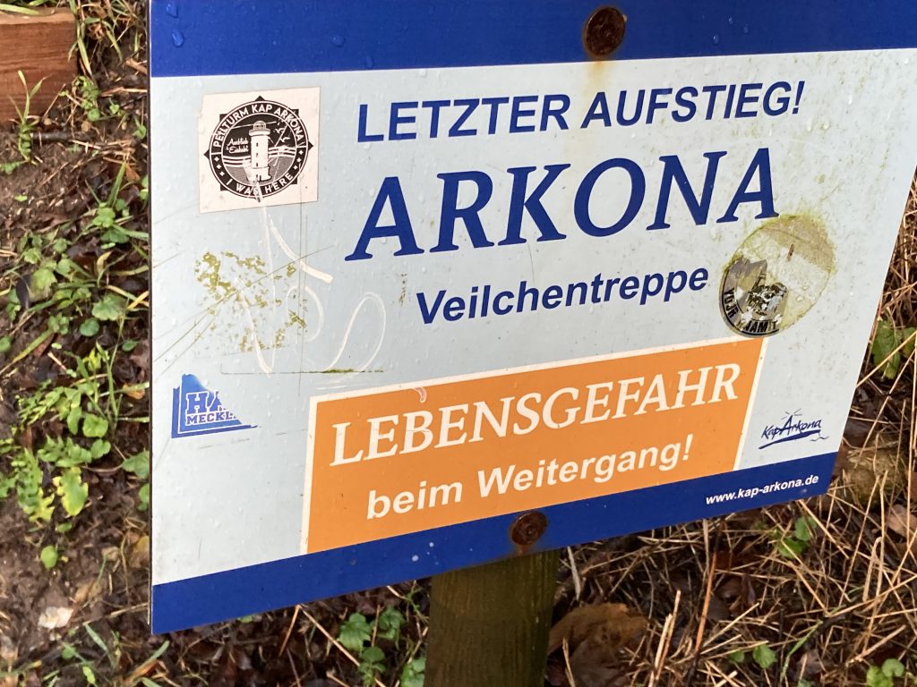 Foto Bernd Oei: Rügen, Kap Arkona, Treppenaufgang zum Felsplateau Swantevit, das derzeit nicht begehbar ist für die Öffentlichkeit. Schilder verweisen auf die Lebensgefahr wegen abstürzender Erde. Der vierköpfige Swantevit war der Haupt- und Kiregsgott der Slawen vor der Zwangschristianisierung.
